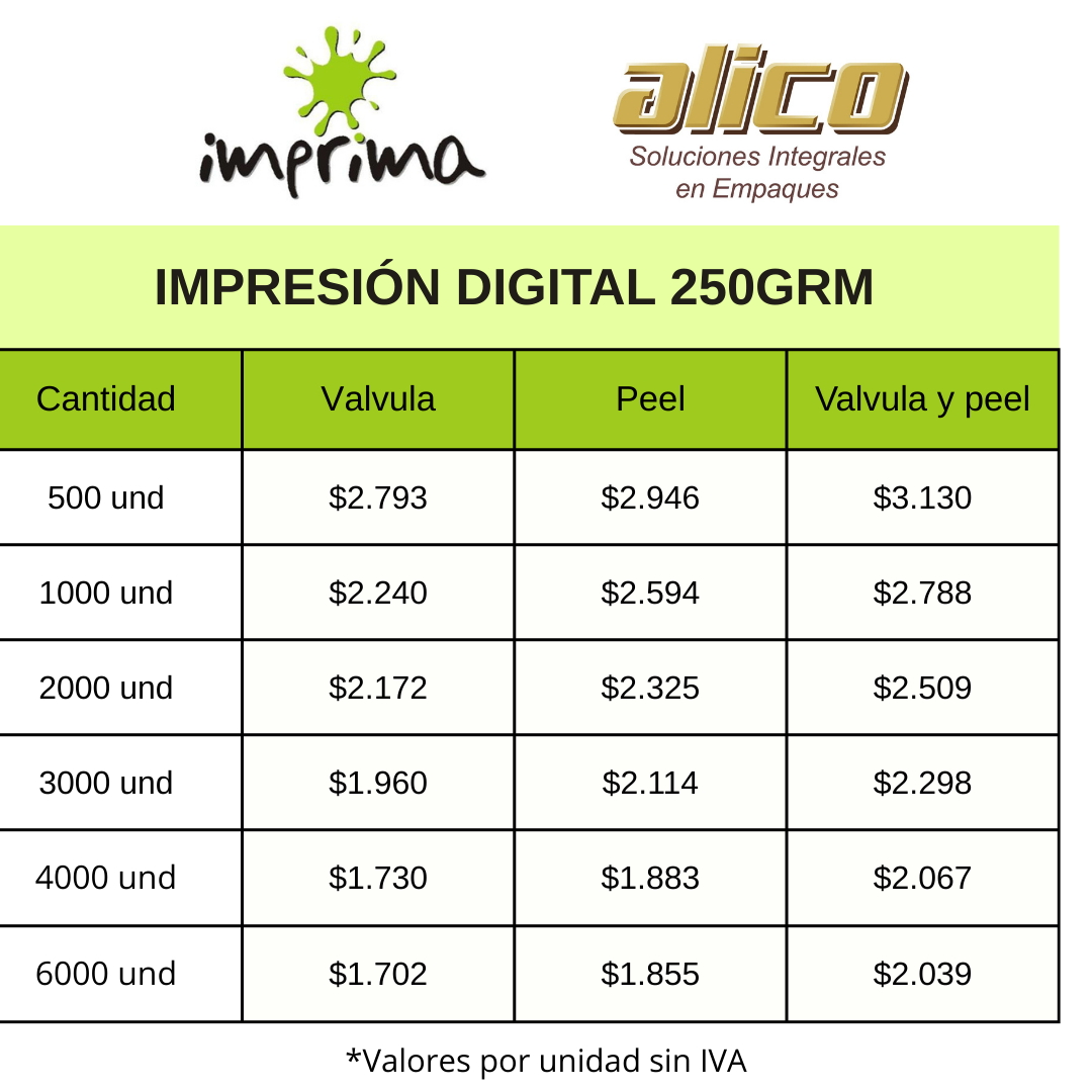 Impresión Digital para productos de CAFÉ: La bolsa Reciplus que manejamos es mono-material, 100 % reciclable, amigable con el medio ambiente)